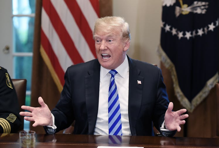 The moment came during a roundtable meeting at the White House on illegal immigration, when Trump said at one point, "These aren’t people. These are animals." That quote is now pretty well known, but the actual context, not so much: The president made that remark after a sheriff had specifically been talking about tracking down MS-13 gang members. The gang is believed to have been behind 25 killings on Long Island since 2016, according to NBC News.