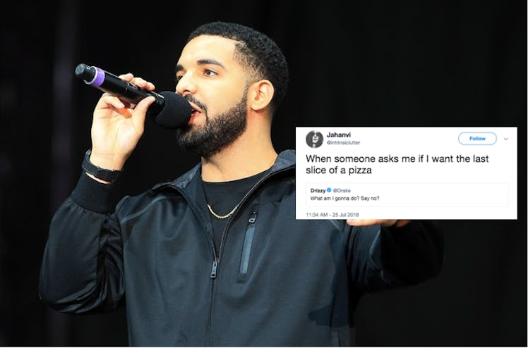 Back in the day, I was well-versed in the art of sub-tweeting. Whenever I was arguing with a friend or if I was mad at a guy, I would totally write a carefully constructed, passive aggressive away message, Facebook post, or tweet to tell the entire world I was annoyed with them. Although I've made sure to since delete the evidence, it's pretty clear that Drake has left all of it out in the open, and fans are totally loving it. In response to a tweet he wrote in 2012 saying, in full, "What am I gonna do? Say no?", the Twitterverse is coming up with the greatest situations that Drake could have been faced with at the time, and they're definitely worth looking at.