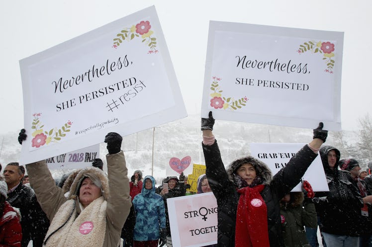 According to President Trump, we should all be soaking up the sun and basically thanking him for... what exactly? Any economic success we've had in the last year still hasn't changed the fact that women make less than our male counterparts (and the wage gap is worse for women of color, per CNBC). It also doesn't change the fact that we suffer countless other injustices, like being subjected to sexual assault and harassment, and having a government that wants to tell us what to do with our bodies.