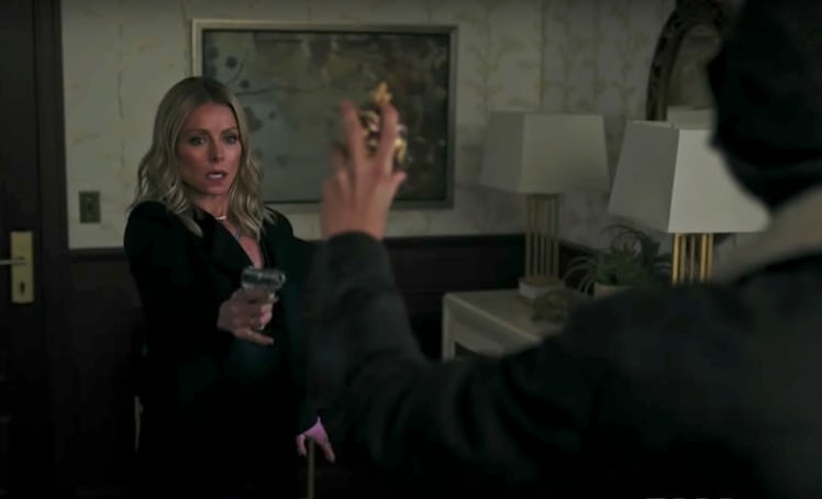 Although there are a ton of potential suspects in the Hiram Lodge shooting, Kelly Ripa's new characters may be the most suspicious. Mrs. Mulwray was teased as Hiram's mistress, and all of the promo clips and photos we've seen of her show her holding a gun. It is no wonder why Jughead's investigation into Hiram's shooting leads him to Mrs. Mulwray. Check out Jughead's intense standoff with Mrs. Mulwray in the newly released scene below: