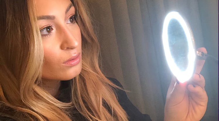 The only thing I didn't love about the compact was that it lights up automatically when it's removed from its pouch, making it hard to sneak subtle peeks at my makeup while out and about. I am probably more likely to use this as a makeup mirror while traveling than an everyday, in-my-bag, touch-up mirror, but TBH, I could also see myself bringing this around and whipping it out when I want to take a good selfie, because it's basically an on-the-go ring light, which I am seriously all about.