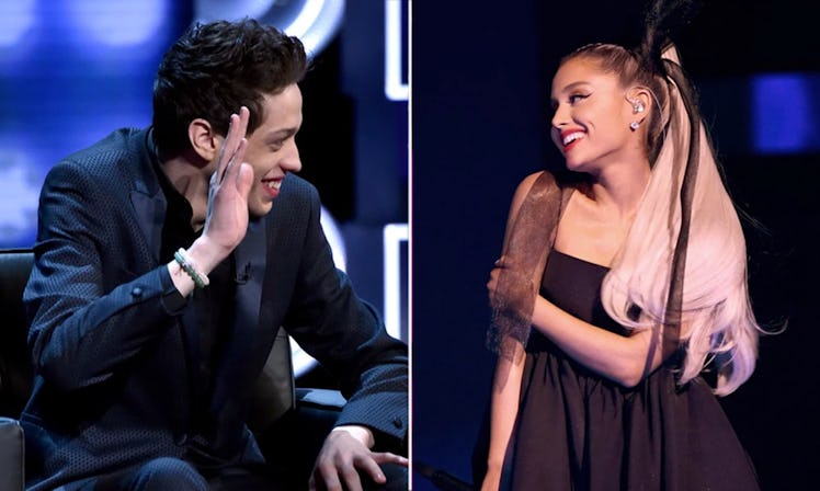 Grande and Davidson have had quite the whirlwind romance (not that I'm complaining or anything). They first started dating in May 2018, however, a source told E! News it was only a casual fling. Just weeks later, rumors started to swirl claiming that the two were already engaged to each other, with speculation swarming even more feverishly after Davidson took to Instagram on June 15 to post a pic of what seems to be Grande's hands with a huge pear-shaped diamond ring dazzling on her left ring finger.