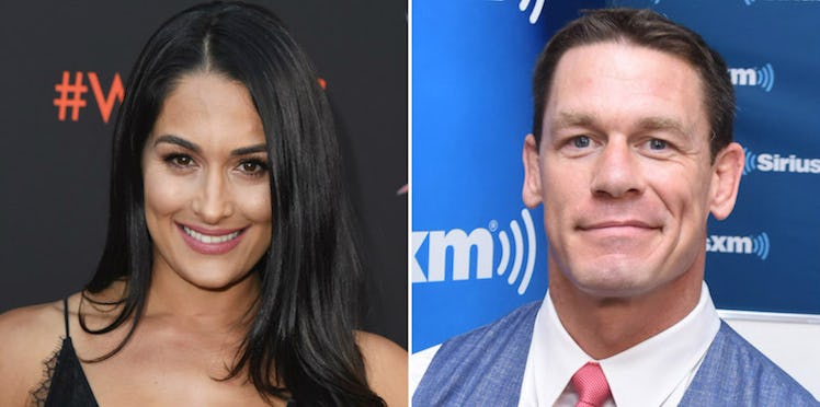 Nikki Bella is slowly but surely working her way through her breakup with John Cena. According to TMZ, the Total Bellas star is apparently moving out of the house she and John Cena once shared and is house hunting for her own place close to Brie Bella's California home. The twins appeared on The Tonight Show on Wednesday, July 25, and in their interview with Jimmy Fallon, they talked about breakups when they were kids compared to breakups now. And the video of Nikki Bella joking about her breakup with John Cena is so cringeworthy, it produced a unanimous uncomfortable groan from the audience. Even Jimmy Fallon let in a sharp breath between gritted teeth after Bella made the joke. It wasn't outright offensive or anything, but yikes, was it awkward.