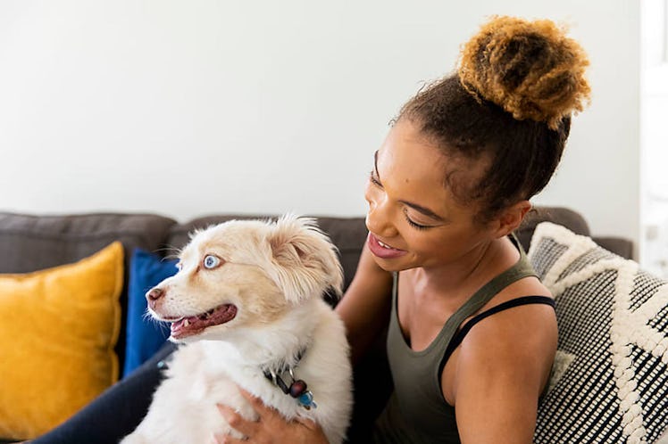 If you realize that your dog is experiencing a bit of separation anxiety, you probably can't quit your job and stay home with her all day, as amazing as that sounds. But a few adjustments might help cut down on her antsy moments and keep your beautiful fuzzy rugs from being chewed into scraps. "Make an effort to take them out for a walk before leaving them alone to tire them out," suggests Freeman. "Lack of exercise can oftentimes cause them to get restless and ultimately take it out on your favorite pillow." It's also always a good idea to consult your vet for extra behavioral advice, and even potentially medication, if separation anxiety is an issue, Freeman adds.