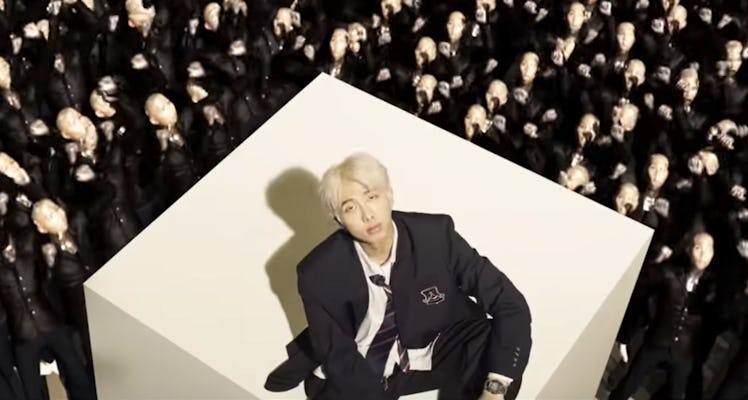 It's a moment we've all been waiting for, BTS ARMY! It's RM’s turn to grace us with the comeback trailer for "Map Of The Soul: Persona" and OMG it doesn't disappoint. While — in usual BTS style — the video is totally colorful, full of whimsy, and eclectic visuals, there is so much more happening beneath the surface on an emotional and intellectual level. But what do RM's "Persona" lyrics mean? Well, friends, RM's poetic rhymes grapple with a struggle so many of us face: the search for the true self.
