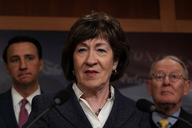 Some other Republicans with questionable loyalty to Trump include Sen. Jeff Flake, of Arizona, who has been an incredibly vocal critic of the Trump administration (he once compared his rhetoric to that of Stalin), Sen. Dean Heller, of Nevada, who is the only Republican senator on the ballot representing a state that Hillary Clinton won, per The Washington Post, and of course, Sen. Lisa Murkowski, of Alaska, who like Collins, is partial to a justice that recognizes the decision of Roe v. Wade as law. Then, there's also Sen. John McCain, of Arizona, who has taken a leave of absence as he undergoes treatment for brain cancer. (McCain famously returned to the Senate to vote no on a skinny repeal of Obamacare in July 2017).