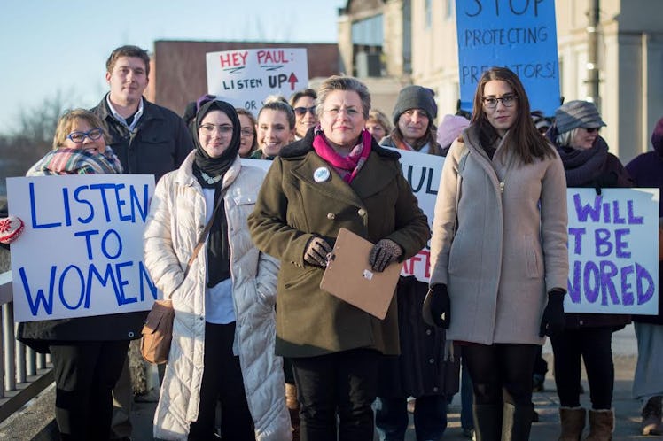 The scene opens on a short-haired woman with glasses unlocking a classroom, bundled up in winter clothes. Joined by a chorus of diverse women, she stares into the camera and says, "We will not be ignored." The 55-year-old looks like she means business. She may not be alone in the larger battle for women's equality, but eight months into her campaign, Cathy Myers is the only woman in the running for representative of Wisconsin's First Congressional District in the 2018 midterm elections. And in doing so, she's looking to unseat one of the nation's top Republicans: Speaker of the House Paul Ryan.
