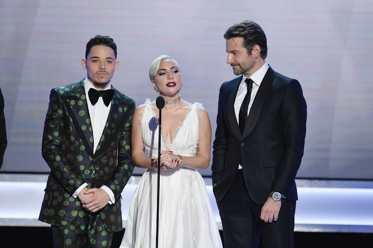 When one of the biggest movies of the year is one that's all about the making of a music icon, you can bet that music is going to be a big part of the Oscars. I'm talking about A Star is Born, the movie that launched a thousand videos of fans trying to mimic Lady Gaga's "AH AH AH AH AHHHHHH." Luckily, the instead of going down another fan video rabbit hole on YouTube, you can just tune into the Oscars to see Gaga and Bradley Cooper perform the nominated song "Shallow." Gaga herself is nominated for writing the song, which marks her second Oscar nomination for Best Song after 2015's "Til It Happens to You" from the documentary The Hunting Ground. Cooper is no stranger to the Oscars either. He was previously nominated for Best Actor for 2014's American Sniper. But just because he's been to the Oscars before doesn't mean he's any less nervous for his performance. E! News asked Cooper how he'll feel before he takes the Oscars stage to sing "Shallow," and he said, "I'm sure I'll be terrified."