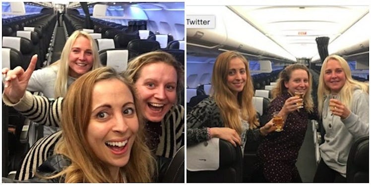 Observing they were the only ones on the British Airways plane, these three friends (Laura Stevens, Sarah Hunt and Laurie-Lin Waller) did what civic duty dictates: They took selfies and put them on Twitter.