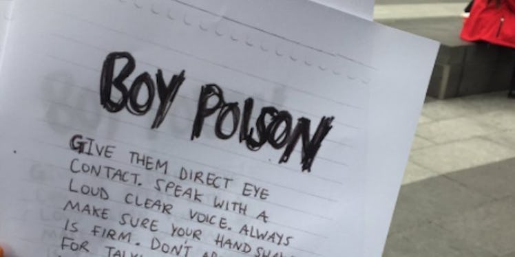 According to Mashable, Tassew was handing out these handwritten messages at Kings Cross Station in London to encourage women and young girls to embrace their femininity in the workplace. The note entitled "Boy Poison" starts off by letting women know that when talking to men in the workplace, they should be comfortable enough to "Give them direct eye contact. Speak with a loud clear voice." It was Tassew's experiences working in male-dominated environments that contributed to her loss of confidence when it came to standing up for herself in the workplace.
