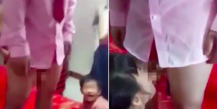 The footage was recorded at a bizarre wedding reception that shows a bride seemingly giving her husband a "blowjob" as he stands half-naked on a table.