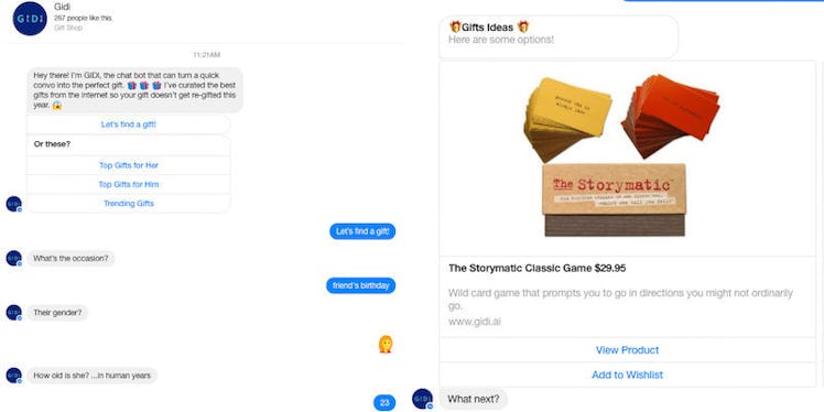 Meet Gidi: a bot that will do all the hard work for you. Gidi will scour the internet for unique gifts you definitely weren't going to think of yourself.