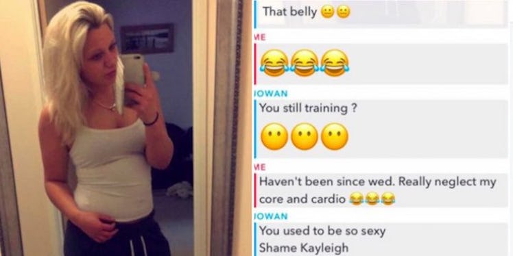 Soon after, she received a message from her personal trainer, Jowan Townsend-Trahair, in which he only wrote, "that belly," accompanied by a couple of frowning emojis.