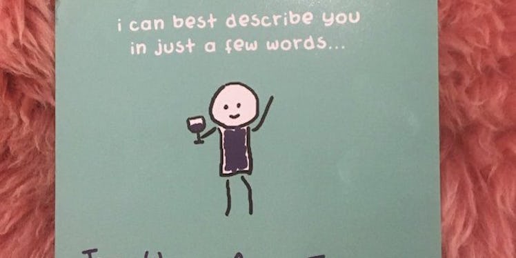 Then the card rattles off a few admirable adjectives at the bottom of the card, including, "Terrific, Wonderful, Awesome, Tremendous."