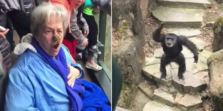 The chimpanzee's poop landed in the middle of an innocent grandmother's face, and we can all feel her pain.