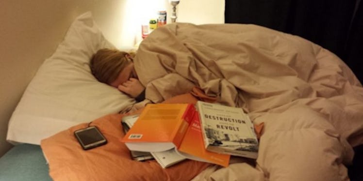 My 38 year old girlfriend just started her second quarter of college. She's raised two kids, 15 and 10, on her own, has piss all parents and was the victim in not one but two domestic violence cases. This is how I found her tonight. I'm so proud of this woman I could burst. We went wedding ring shopping earlier today and I think I'm ready to make the best decision of my life.FP Edit: Wow! I had no idea Imgur could be so amazing despite the forgotten cat tax! Thanks for all the kind words of support you guys! This woman profoundly inspires me and it sounds like she has many of you. Also, I'm gonna take all of y'alls advice and marry the shit out of her. Send me all your love stories.FP Edit 2: some dog tax <a class="imgur-image" data-hash="fd5p67A" href="//imgur.com/fd5p67A.jpg">http://imgur.com/fd5p67A</a>