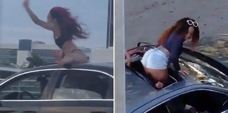 The twerking didn't stop there either. A third woman was filmed shaking her goods while standing up through the sunroof of a car.