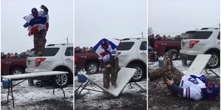 Buffalo Bills Fan Snaps Leg In Half Jumping Through Table At Tailgate