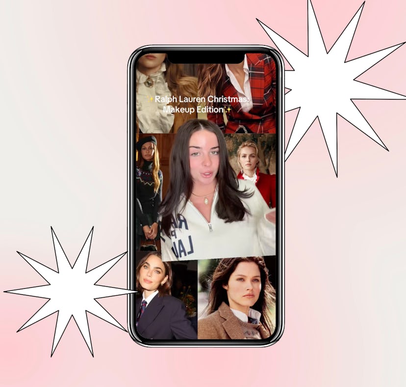 If TikTok’s beloved “Ralph Lauren Christmas” had a beauty mood board, it would be all glossy lips, glowy skin, and the kind of brushed-up brows that look like they belong to someone who winters in Aspen.