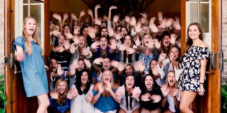 In sorority rush, you are surrounded by pretty girls who all seem to be smiling and singing at you. Everywhere you look, it seems like someone is smiling at you.