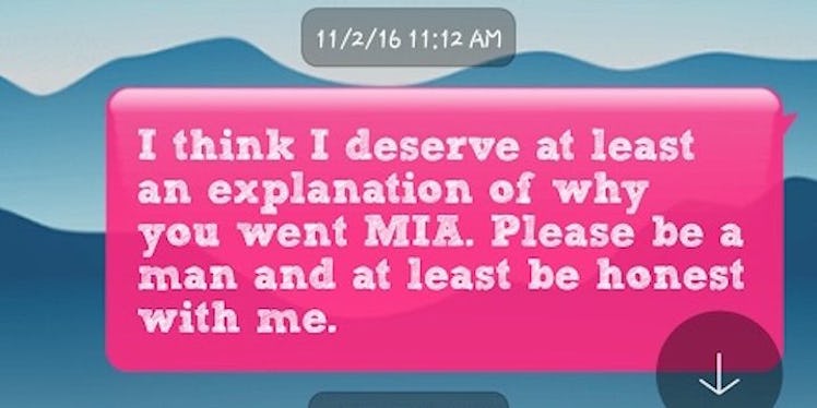 I continued to get ready and headed up in the area where he lives and where our date would be. One hour went by. Then, two went by. There was nothing! I sent him a text stating I was hungry and going home. Then, I told him I wish he could have let me know if he wasn't able to make it or if he was running late. But I still got no response.