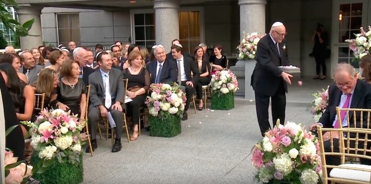 Stanley, whose role as "flower grandpa" was kept as a surprise from all the guests, was the last to walk down the aisle before Jen and her parents... and the crowd (obviously) loved it.