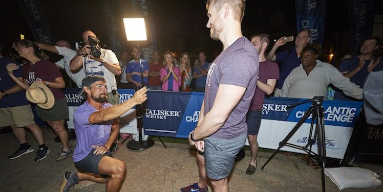 The 31-year-old Rice University rowing coach had just completed a 3,000 mile trek across the Atlantic Ocean when he emerged from the boat and dropped to one knee in full-on engagement mode.
