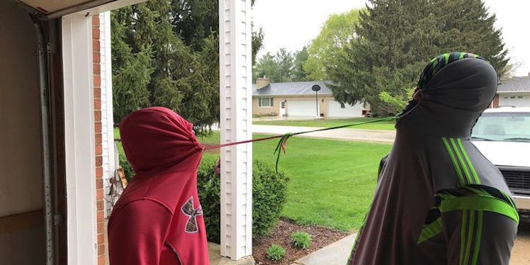 Instead, their idea of bonding involved some intense eye contact through the face holes of two big, comfy hoodies.