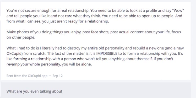 You don't tell someone they're going to be alone if they don't revamp their whole personality, then turn around and say you're talking about yourself.
