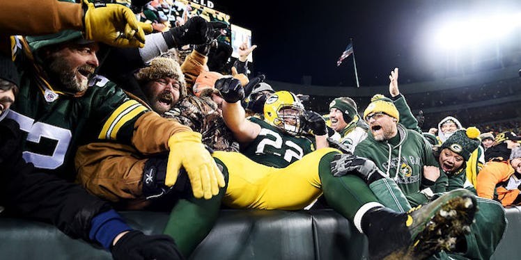 Here's to hoping, one day, all of us love literally anything as much as Ryan Holton Murphy Packer seems to love his Packers... and his wife.