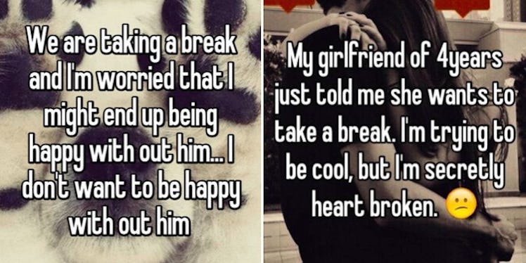 Recently, Whisper, the app that lets you set your secrets free via anonymous messages, asked a bunch of people what "taking a break" from their relationships really means.