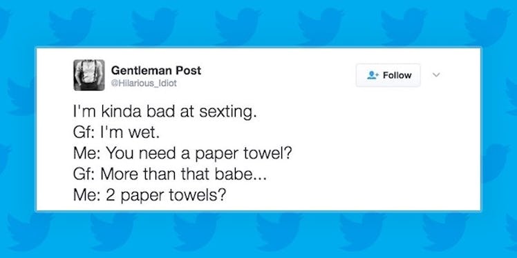 This strange combo of dirty and weird makes room for a LOT of funny sexting jokes — and Twitter is full of them.