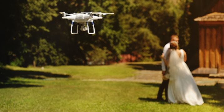 The trend of capturing every moment of your wedding with a GoPro is being replaced by capturing your wedding moments with drones.