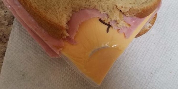 He took apart the sandwich to find this message from his wife written across the slice of cheese:
