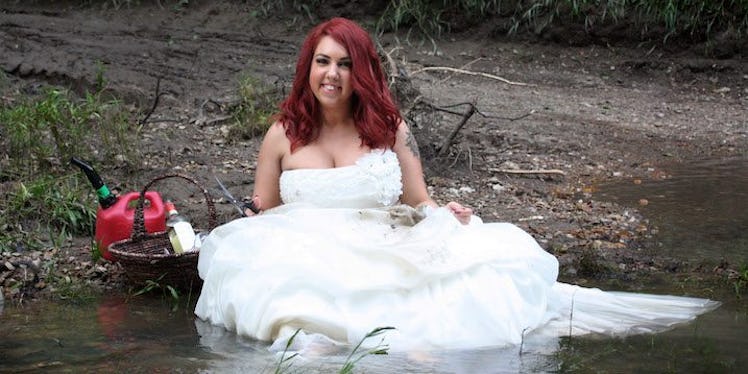 After doing a little bit of research on Trash the Dress, she hatched the plan to head out into a river, cut up the dress and ultimately set that bitch on fire.
