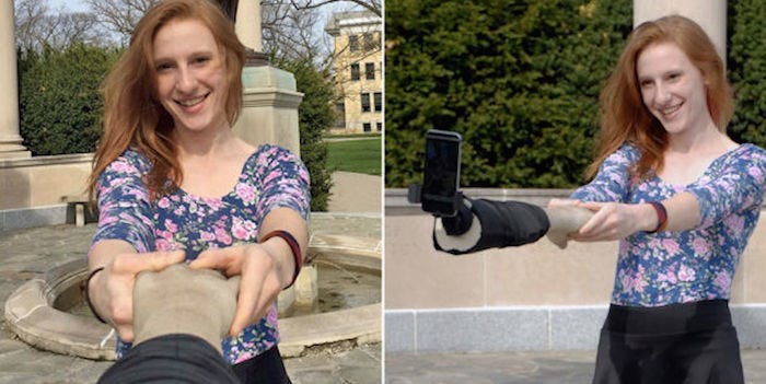 Another fun perk of the Selfie Arm is how it looks exactly like a severed zombie arm.