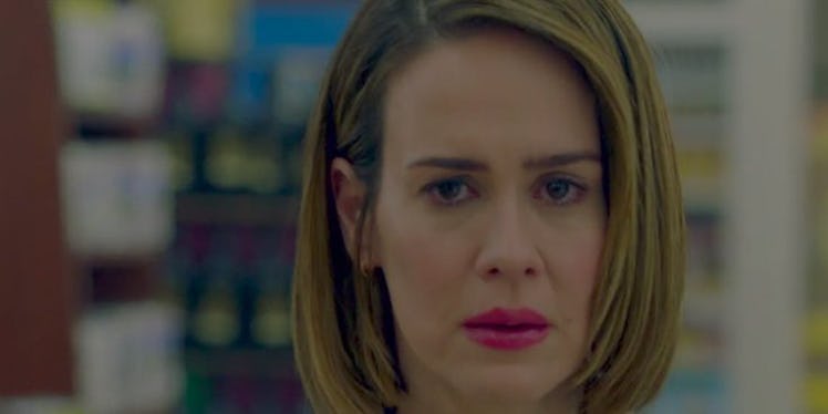 Another American Horror Story episode, another creepy mystery for haunt our nightmares. The latest episode of AHS: Cult gave us more horrifying clowns, more unsettling Evan Peters faces, and a pair of game-changing murders that could turn this whole season on its head. Spoiler alert: This post will discuss details from the second episode of American Horror Story: Cult. At the end of the episode, Sarah Paulson's Ally and Alison Pill's Ivy respectively find themselves in front of some dead bodies fresh from the butchery — Ally stands over the newly killed employee Pedro and Ivy bumps into the frozen corpse of her sous chef hanging in the meat locker. Although it's not exactly a sad moment to see Ivy's sous chef swinging on that meat hook since we saw how racist he was being towards Pedro earlier in the episode, his gruesome murder does leave AHS: Cult fans wondering just who might be capable of such a macabre killing. First let's recap what happened and then get into some theories about what might be going on.