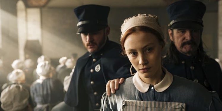 Alias Grace has a slightly better opportunity to express those ideas without resorting to voice overs. In Atwood's book, she creates a fictional doctor and early psychotherapist, Simon Jordan, who interviews Grace, trying to understand if she did it, why she did it and if she's more guilty than people believe because of her being "of the fairer sex."