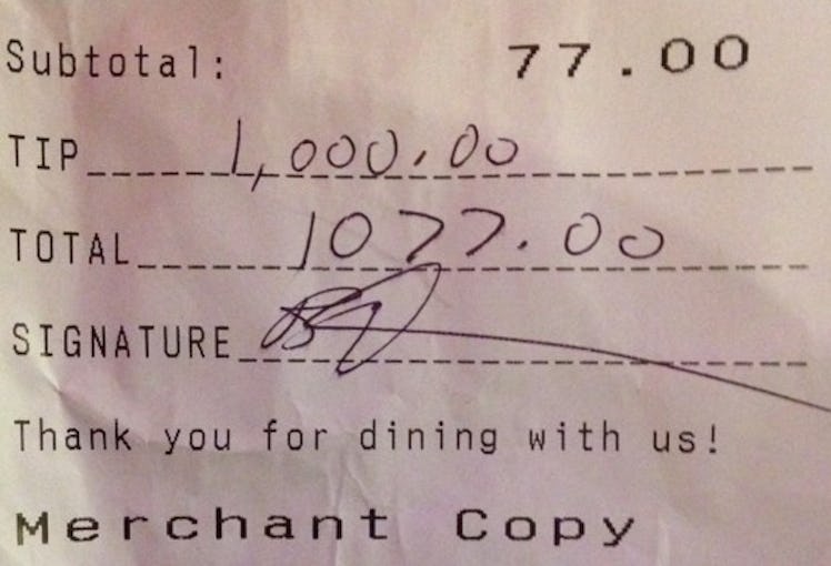 I did the math for you guys, and that's about a 1,300 percent tip.