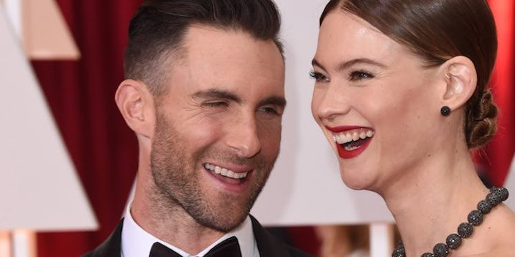 Behati is totally unfazed by his story. She's a new mom, after all. She needs her sleep.