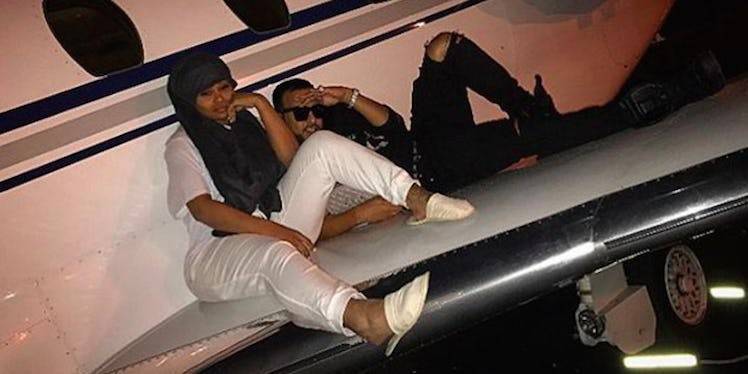 Here is a pic that French posted of the two casually hanging out on the wing of an airplane.