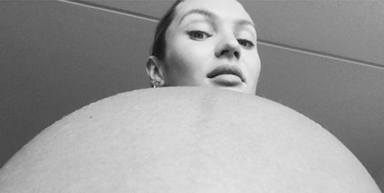 If you're curious how pregnant Candice Swanepoel is, you'll have to climb over her baby mountain to ask.