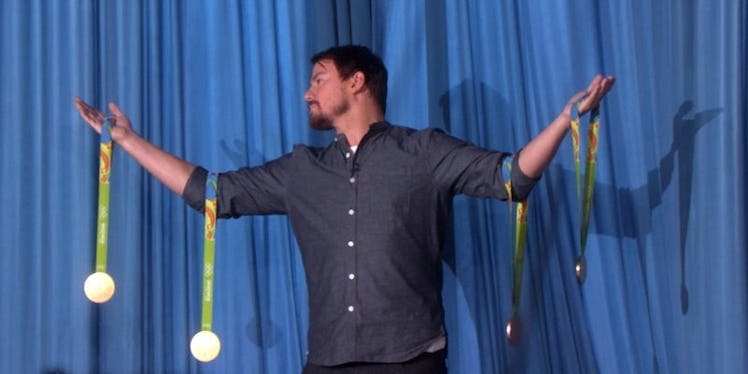 On Tuesday, the 36-year-old "Magic Mike" actor stopped by "The Ellen DeGeneres Show" on the same day 19-year-old Olympic gold medalist Simone Biles was stopping by, too.