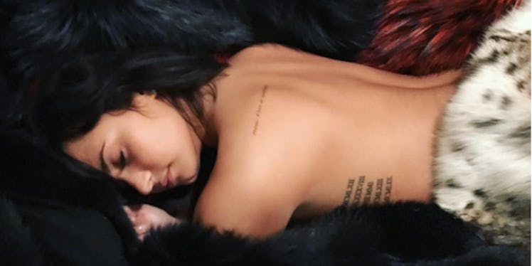 Like, seriously, look up "luxury" in the dictionary and I'm sure you'll find this photo of Demi just casually snoozing in the nude while a giant pile of multi-colored furs envelops her. Honestly, I'm getting a severe case of nap envy right now.