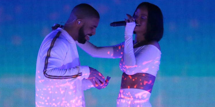Look, even if Drake and Rihanna are officially dating now — which they are, according to some anonymous sources — you know it's the kind of relationship where Drake does anything for his girl and hopes she lets him touch her someday.