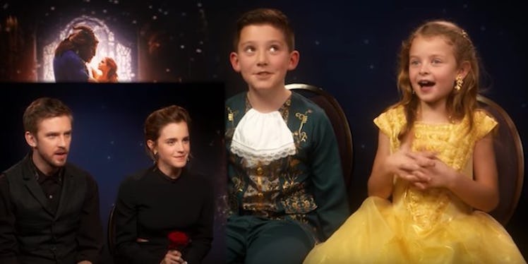 In the video, Emma Watson and Dan Stevens meet the mini versions of themselves, Olivia and Ted, dressed in full "Beauty and The Beast" costumes.