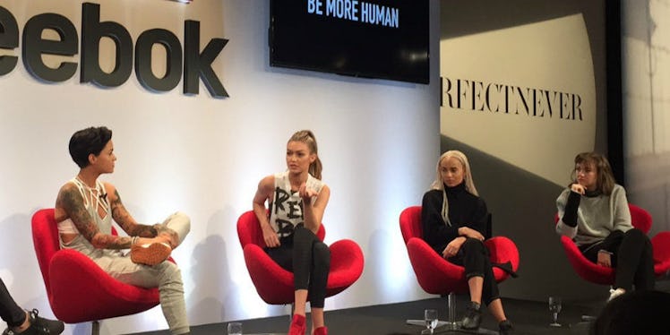 Alongside gymnast Aly Raisman, Ruby Rose, Zoe Kravitz and Lena Dunham, Gigi spoke of what it meant to be a woman in their industry, how there's no one they can be better than but themselves and how they challenge "perfection."
