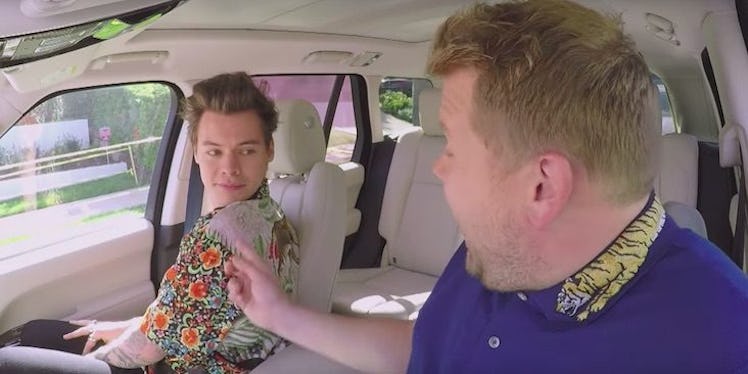This isn't the first time we've seen Styles on Carpool Karaoke with James Corden. He sat in the back, middle seat while he drove around with Corden and the rest of One Direction back in December 2015.