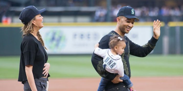 This past Monday, June 6, Legend and Chrissy Teigen headed to a Seattle Mariners baseball game at Safeco Field with sweet, sweet baby Luna in tow.