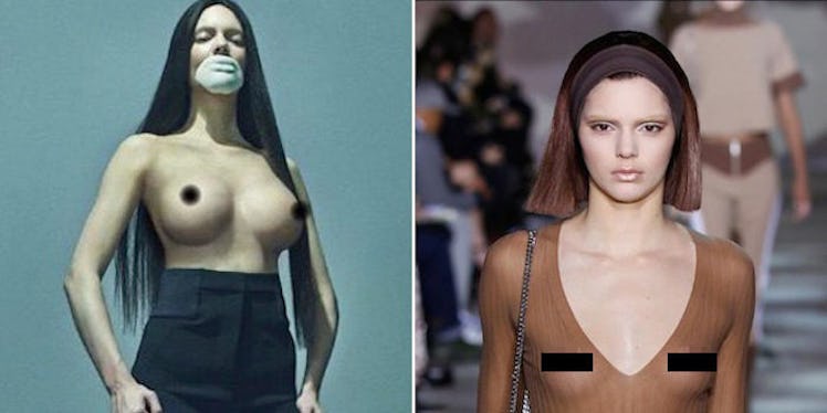 Update: Love Magazine Fashion Director Panos Yiapanis confirmed the breasts are indeed not those belonging to Kendall Jenner. Rather than photoshop, the shoot utilized prosthetic breasts.
